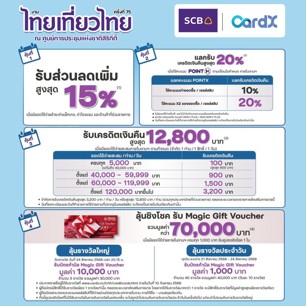 พร้อมโปรโมชั่นบัตรเครดิต ธนาคาร Krungsri, UOB และ SCB/CardX