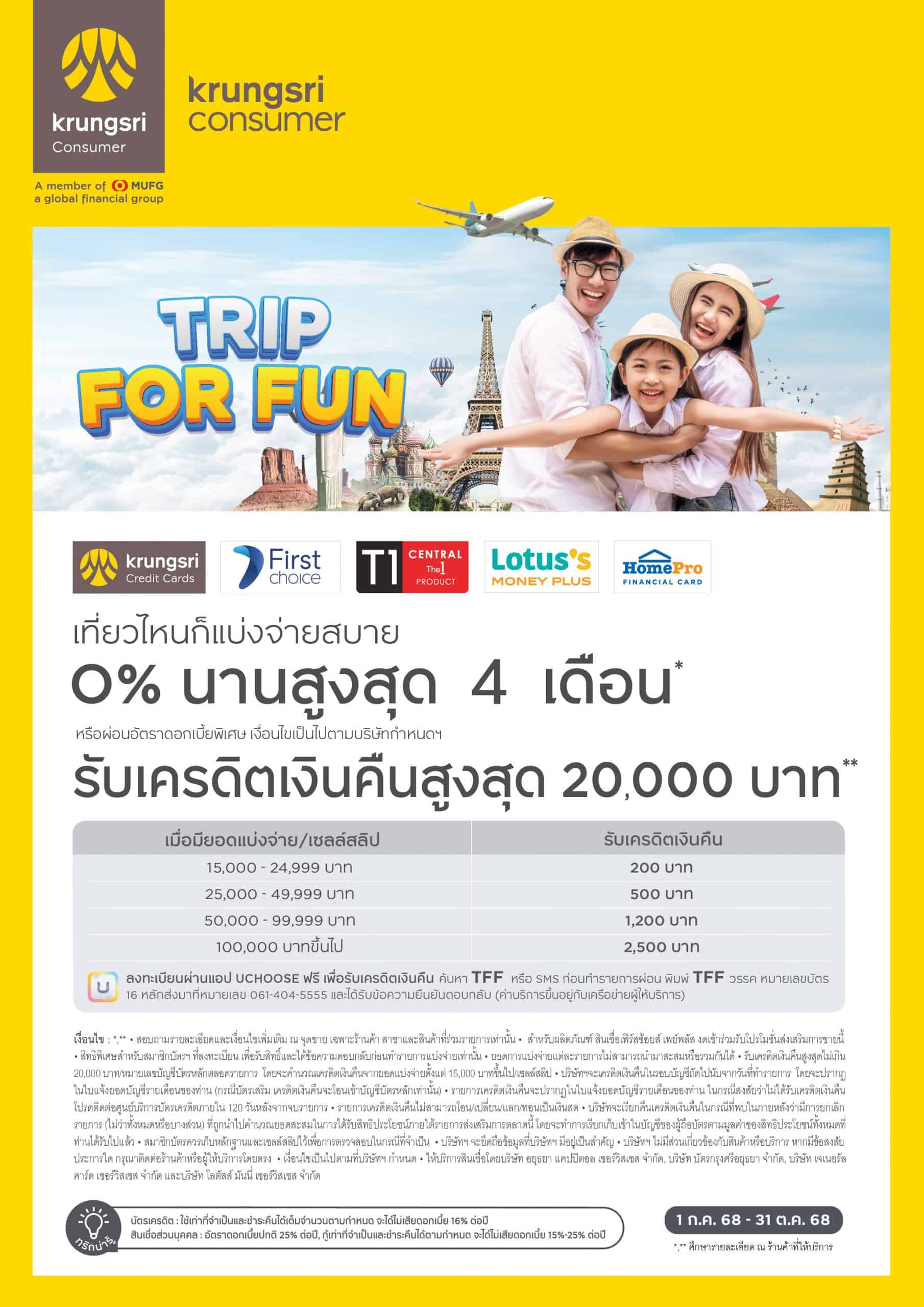 เที่ยวกับทริปในฝัน แบ่งจ่ายสบาย 0 เปอร์เซ็นต์ นานสูงสุด 4 เดือน รับเครดิตเงินคืนสูงสุด 20,000 บาท