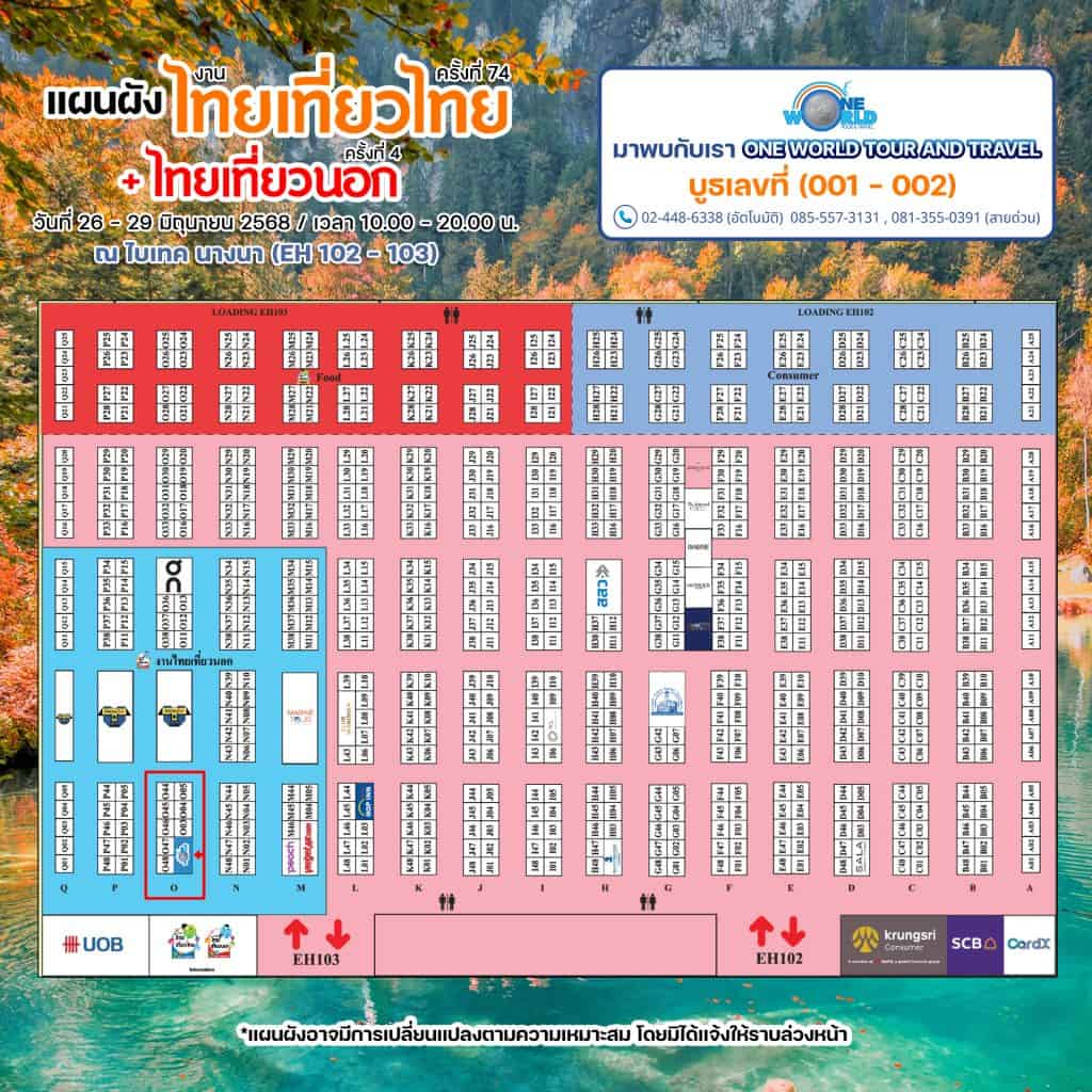 และอย่าลืมแวะมาที่บูธ ONE WORLD TOUR AND TRAVEL (บูธเลขที่ 001 – 002) ณ ไบเทค บางนา (EH 102 – 103) เพื่อรับข้อเสนอสุดพิเศษจากผู้เชี่ยวชาญด้านการท่องเที่ยว!