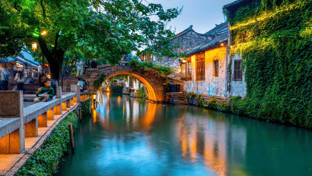 เมืองแห่งสายน้ำ ในเจียงหนาน (ทางใต้ของแม่น้ำแยงซี) ในพื้นที่สามเหลี่ยมปากแม่น้ำแยงซี