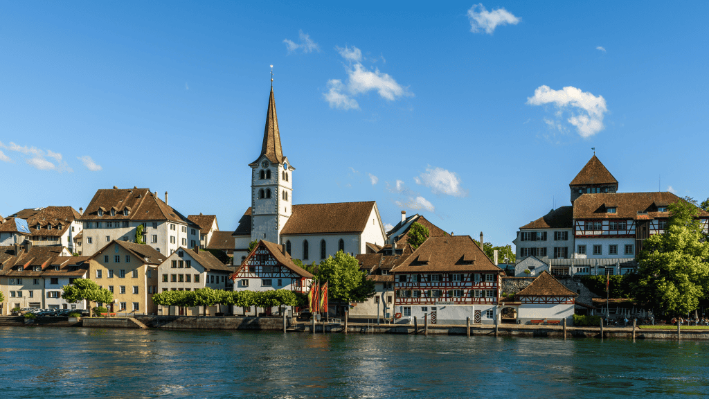 (Diessenhofen, Switzerland) หมู่บ้านเล็กๆ อยู่บนฝั่งแม่น้ำไรน์ ระหว่าง เมืองสไตน์ ฮัม ไรน์ และ เมืองชาฟฟ์เฮาเซิน ประเทศสวิตเซอร์แลนด์