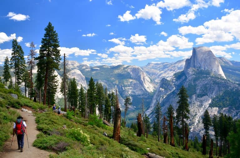 จุดชมวิวกลาเซียร์พอยท์ (Glacier Point) ซึ่งตั้งอยู่เหนือหุบเขาโยเซมิตีกว่า 4,000 ฟุต การเดินป่านี้จะนำไปพบกับทัศนียภาพอันงดงามของสัญลักษณ์ของโยเซมิตีแบบพาโนรามา เช่น น้ำตกโยเซมิตีที่สูงถึง 2,425 ฟุต ซึ่งเป็นน้ำตกที่สูงที่สุดแห่งหนึ่งของโลก รวมถึง น้ำตกเวอร์นัล (Vernal Fall) และน้ำตกเนวาดา (Nevada Fall) และการก่อตัวของภูเขาฮาล์ฟโดม (Half Dome) และภูเขาเอลแคปปิตอล (El Capitan) ซึ่งเป็นเสาหินแกรนิตที่ใหญ่ที่สุดในสหรัฐฯ และดงของต้นสนเซควาเอียยักษ์ที่ใหญ่ที่สุดในโลก